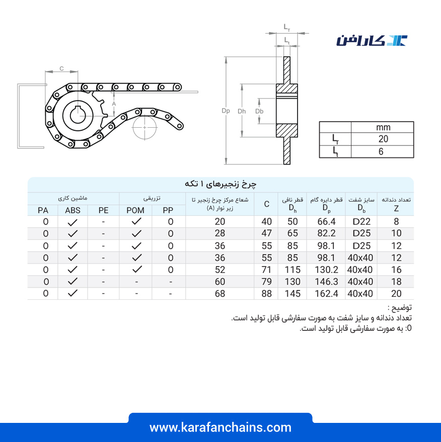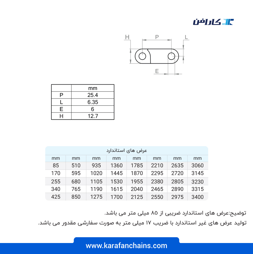 | جدول مشخصات فنی تسمه مدولار حرکت مستقیم گام 1 اینچ بدون گذر سنگین کار | |