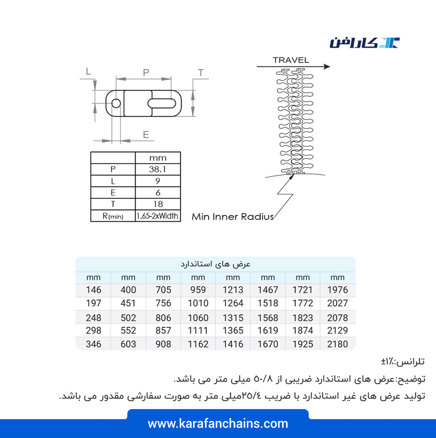 | جدول مشخصات فنی تسمه مدولار چرخشی ( اسپیرال ) گام 1.5 اینچ - سفید | |