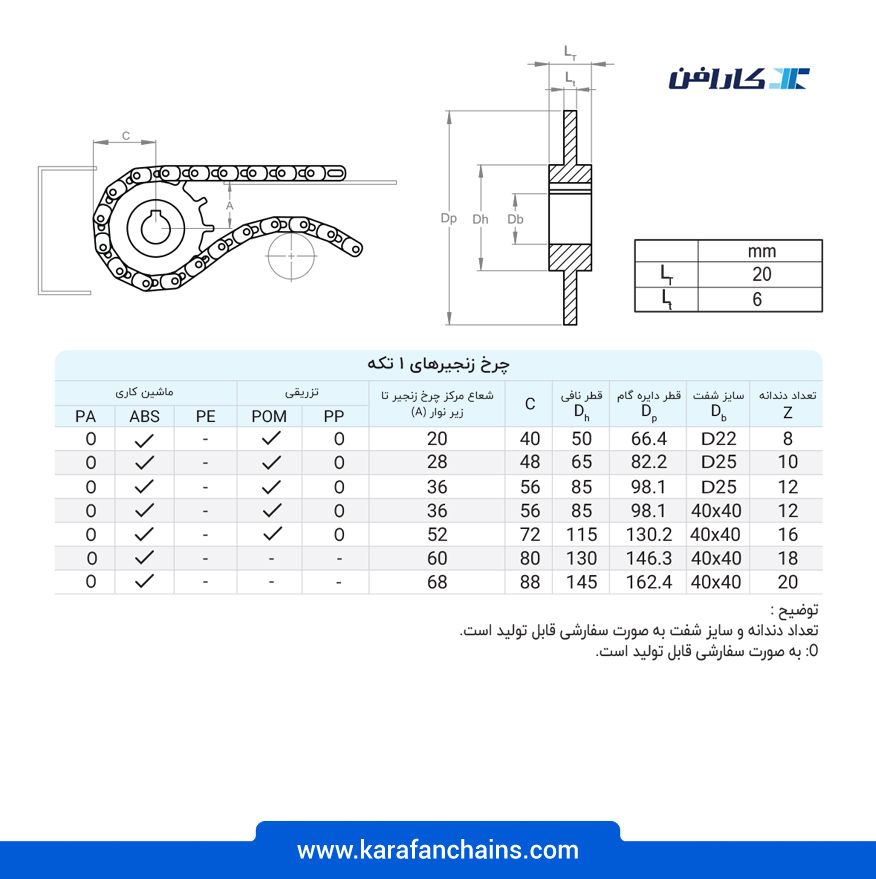 | جدول مشخصات فنی تسمه مدولار چرخشی ( اسپیرال ) گام 1 اینچ جدید { سفید } | |