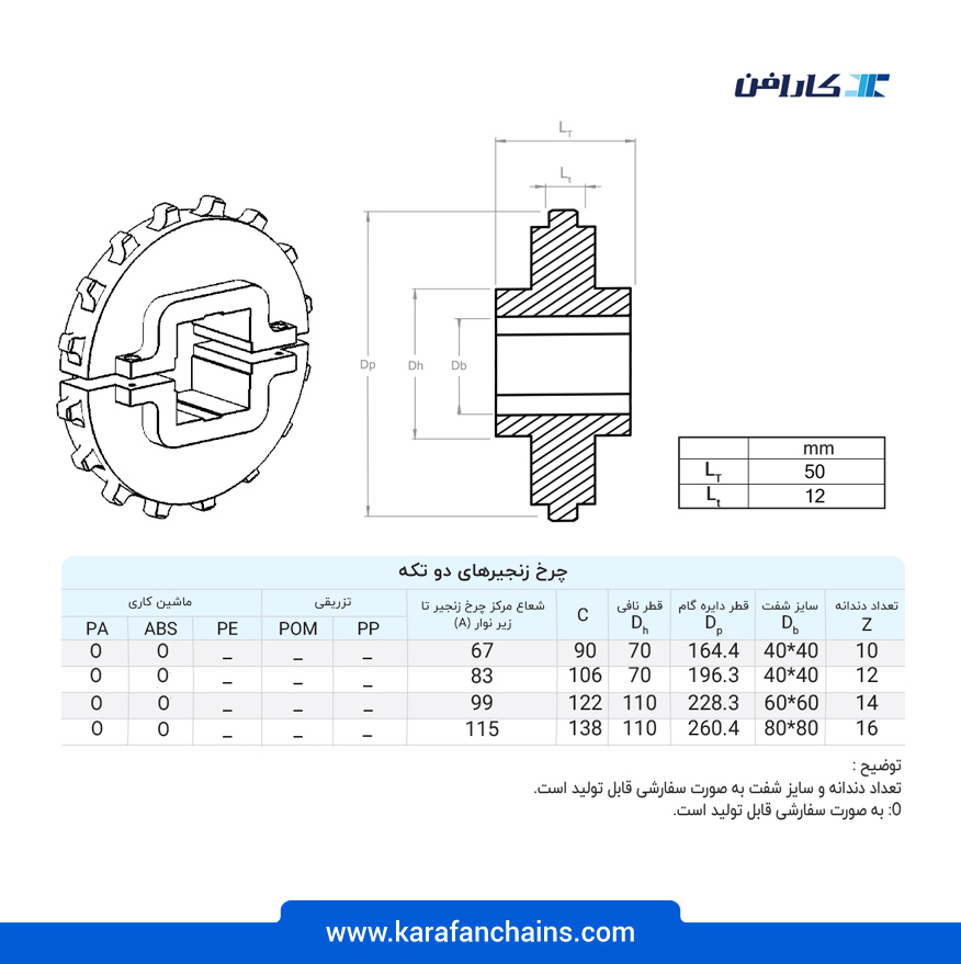 | جدول مشخصات فنی تسمه مدولار چرخشی ( اسپیرال ) گام 2 اینچ - سفید | |